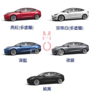 珍珠白(表漆), 珍珠白(底漆), 亮紅(底漆), 亮紅(表漆), 深藍, 夜銀, 純黑