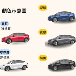 珍珠白(表漆), 珍珠白(底漆), 亮紅(底漆), 亮紅(表漆), 深藍, 夜銀, 純黑