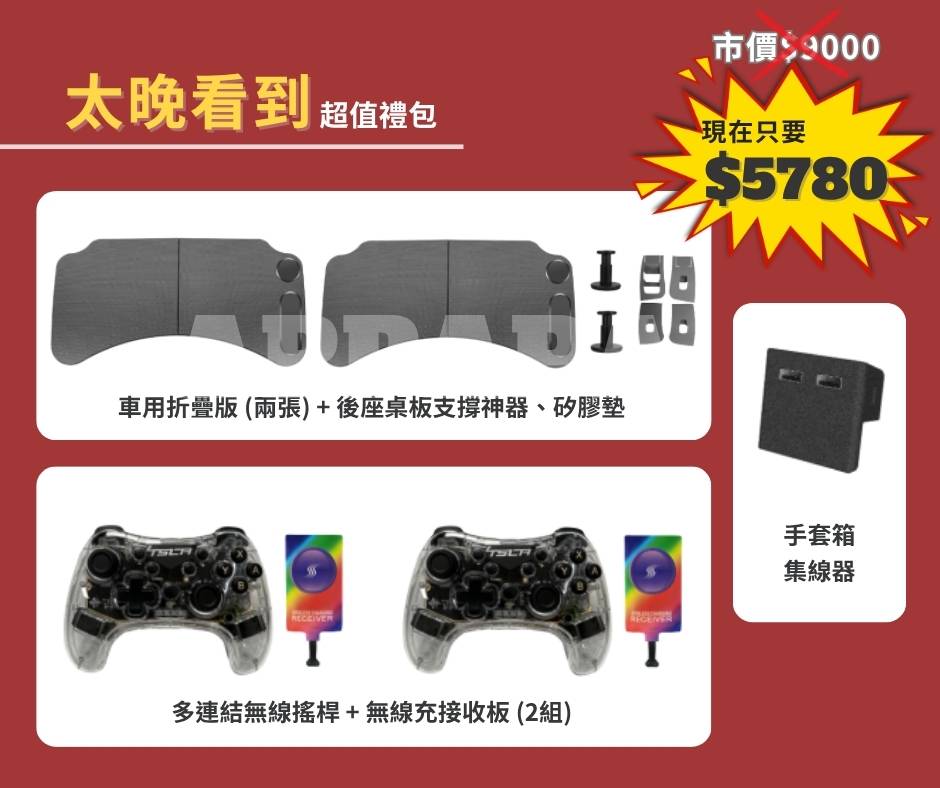 1. 車用折疊桌板(兩張)+ 後座桌板支撐神器、矽膠墊