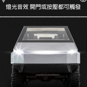 【商品介紹】 特斯拉電動皮卡Cybertruck迴力模型車,可玩可當擺飾,仿真車設計,四輪避震,方向盤轉動輪胎跟著動,車門車蓋皆可打開,還有聲光效果,非常酷炫!大人小孩愛不釋手!