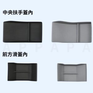 前方滑蓋內、中央扶手蓋內置物墊,可單獨購買