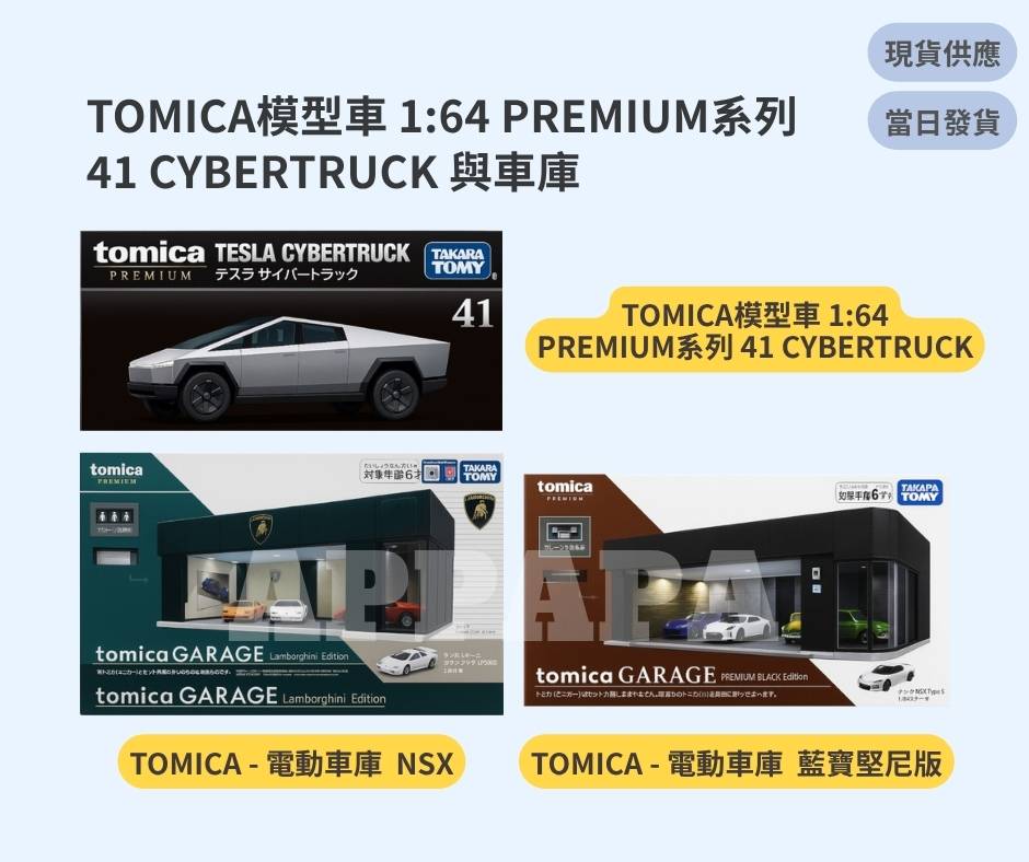 Model Y 煥新版, Model Y 煥新版 內裝TOMICA 模型車 1:64 PREMIUM系列 41 CYBERTRUCK 與車庫